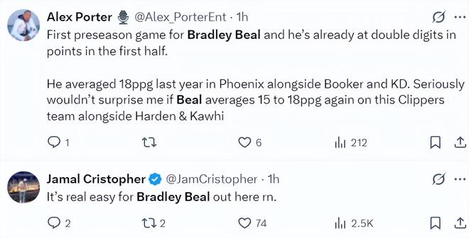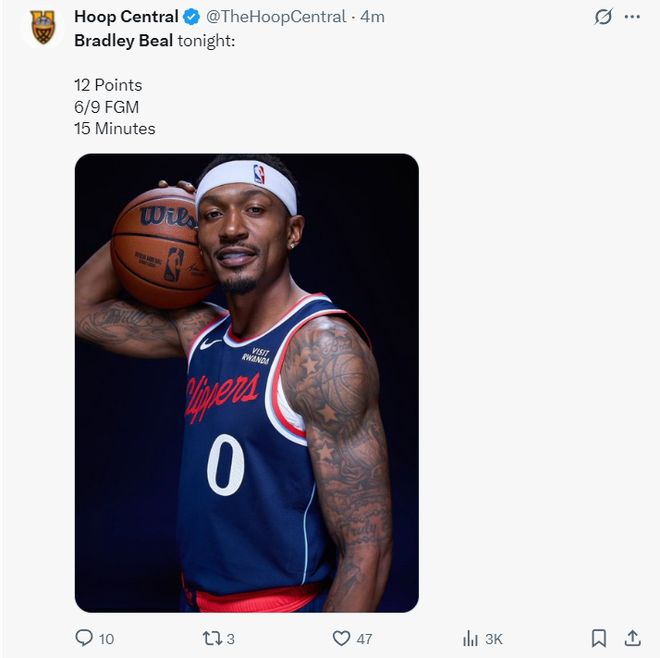 北京時間10月18日,NBA季前賽,快船VS勇士。這場比賽布拉德利-比爾迎來了自己快船生涯的首秀,他此前的三場比賽都是每日觀察輪休,32歲的比爾是快船今夏重要的補(bǔ)強(qiáng)之一,此役他短短14分鐘就拿到12分,展現(xiàn)了不俗的競技狀態(tài)。