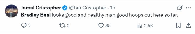 2.比爾回到賽場首次季前賽,他僅僅上半場得分就上雙了;