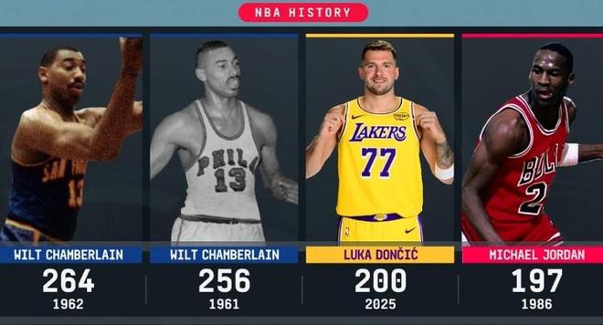 第3、本賽季的前五場(chǎng)比賽中,東契奇合計(jì)得到200分,歷史第三高,僅次于張伯倫(第1和第二都是張伯倫)。